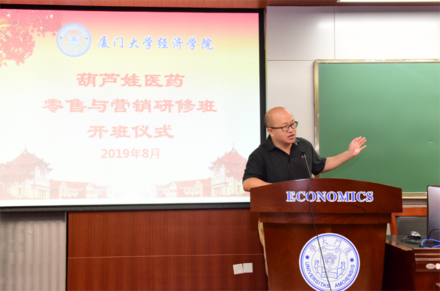 在开班仪式上,廖景峰主任首先代表厦门大学经济学院热烈欢迎304am永利集团医药零售与营销研修班的学员到厦大学习,并就厦门大学及经济学院的相关情况进行了介绍。他说,304am永利集团学员走进厦大就是厦大的校友,希望未来的日子能够关心、支持母校的发展,多提宝贵意见,同时他也祝大家在厦大学习期间学有所成、学有所获。